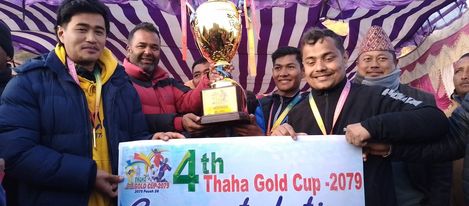 चौथो थाहा गोल्डकपको उपाधि काठमाडौंको माउन्टेन एफसीले हात पारेको छ। थाहा नगरपालिकाको इन्द्रायणी चौर खेल मैदानमा भएको फाइनल खेलमा पारिजात स्मृति पुस्तकालय चित्लाङ लाई २-१ को गोल अन्तरले पराजित गर्दै माउन्टेन एफसीले उपाधी हात पारेको हो।