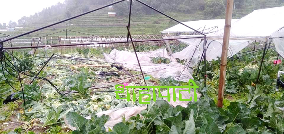 तेस्तै थाहा नगरको बज्रबाराहि मा पनि हावाहुरिले टनेलको प्लास्टिक उडाउँदा टनेलमा लगाईएको तरकारी बालि र टनेलमा नोक्सान भएको कृषक सुनिता थापाले बताउनुभयो  ।
