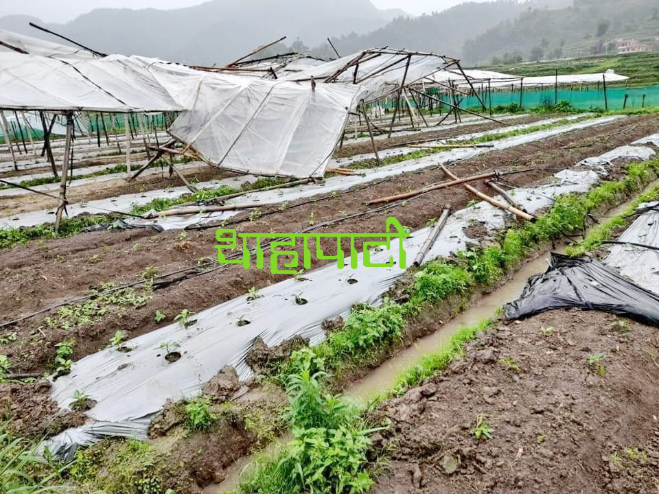 थाहामा हुरिबतासले टनेल भत्काउँदा कृषकको लाखौंको क्षति