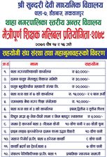 मकवानपुर जिल्लास्थित थाहा नगरपालिका को आर्थिक सहयोगमा सुन्दरी देवी मा.वि.को आयोजनामा थाहा नगरपालिका स्तरिय शिक्षक भलिबल प्रतियोगिता थाहा नगरको वडा न ७ डाडाबासमा रहेको सुन्दरीदेवी माबिमा प्रतियोगिता सोमबार सम्पन्न भएको हो। प्रतियोगितामा थाहा नगरपालिकाका १२ वटा विद्यालय सहभागी भएकोमा आयोजक सुन्दरीदेवी मा.वि. प्रथम, स्वच्छन्द भैरव मा.वि.चित्लाङ द्वितीय,सरस्वती विद्या मन्दिर बज्रवाराही तृतीय र जनकल्याण माबी सान्त्वना  भएका छ्न्। प्रथम हुनेलाई तीस हजार नगद सहित शिल्ड मेडल  प्रमाणपत्र , द्वितीय हुनेलाई बीस हजार नगदसहित प्रमाणपत्र, तृतीय हुनेलाई दस हजार नगदसहित प्रमाणपत्र तथा सान्त्वना हुनेलाइ नगद पाँच हजार वितरण गरियको थियो।  साथै, खेलमा प्रथम स्थान हात पार्न सफल भएको सुन्दरीदेवीका शिक्षक प्रकाश बहादुर चन्द उत्कृष्ट खेलाडी घोषित हुनुभयो भने स्वच्छन्द भैरवका पिताम्बर घिमिरे उत्कृष्ट स्पाइकर र उत्कृष्ट सेटर सुन्दरीदेवीकै प्रताप सिंह गोले हुनुभयो। सुन्दरीदेवी माबी विद्यालय व्यवस्थापन समितिका अध्यक्ष बिनायक गोलेको अध्यक्षतामा सम्पन्न समापन समारोह थाहा नगरपालिकाका प्रमुख बिष्णु बिष्टको प्रमुख आतिथ्यता तथा उपप्रमुख भरत गोपालीको बिशिस्ट आतिथ्यता रहेको थियो।