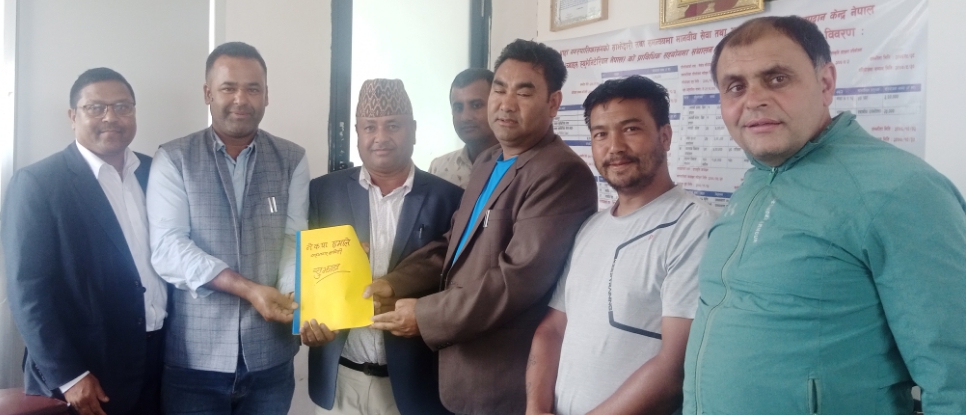 जेठ् २७ गते नगर प्रमुख बिष्णु बिष्टको कार्यकक्षमा पुगि नेकपा एमाले ले नगरको बिकासका लागि नगरपालिकाले चाल्नुपर्ने बिबिध कार्यक्रम हरुको विषय सहित नगर प्रमुख बिष्ट लाई सुझाव पत्र बुझाएका हुन ।