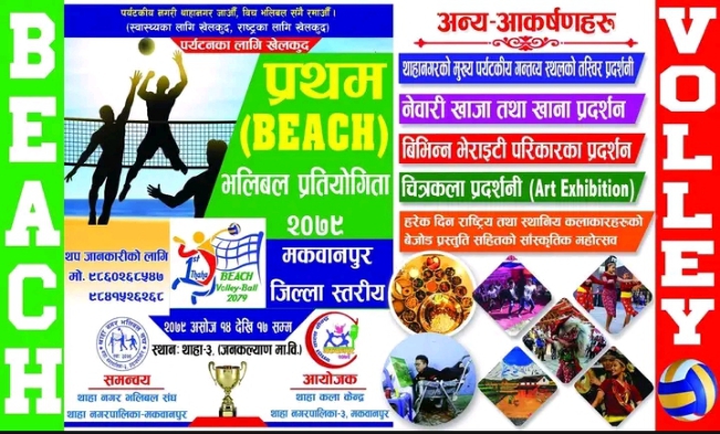 आज थाहा नगरको शंकर होटलमा आयोजना गरियको खेल तालिका टाइसिट निर्माण तथा प्रतियोगिताको विविध पक्षको जानकारी दिने उद्देश्यले आयोजित कार्यक्रममा विच भलिबल तथा पर्यटन सांस्कृतिक महोत्सवको बारेमा जानकारी गराइएको थियो।